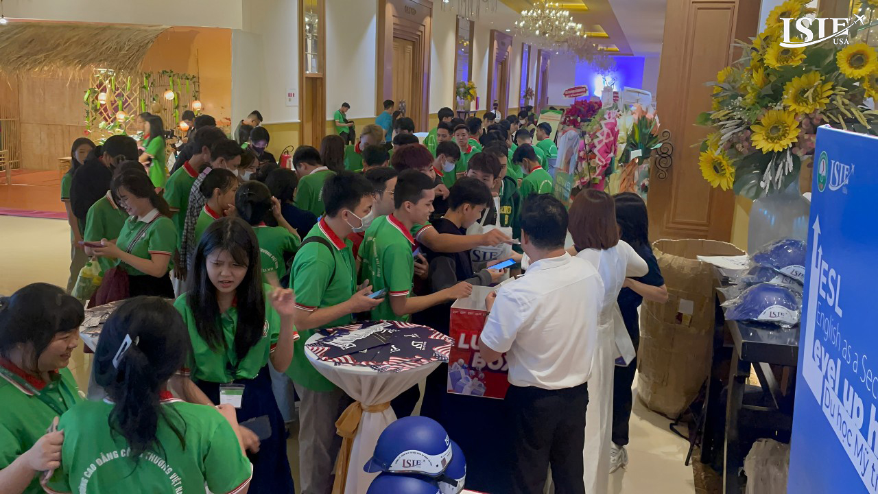 Ngay từ những giờ đầu, không khí sự kiện đã diễn ra sôi nổi và đầy hứng khởi, hàng trăm sinh viên đã đổ về tham dự. Các bạn được tư vấn chi tiết về cách đăng ký khóa học, từ đó mở ra con đường trở thành sinh viên Mỹ chính thức thông qua chương trình ESL online. Đặc biệt, chương trình này còn giúp sinh viên dễ dàng đạt được visa du học và tối ưu hóa lợi ích so với các chương trình du học thông thường.
